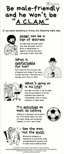 Figure 1. Infographic from the Centre for Male Psychology’s ‘A. C.L.A.M.’ mental health awareness campaign.
